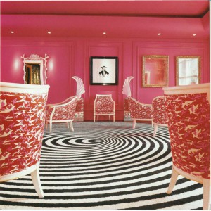 В большом Розовом салоне в «G Hotels (Галвей, Ирландия), оформленном Филиппом Трейси, стенам и потолку придан динамичный оттенок розового цикламена. Черно-белый ковер появился под впечатлением от шляпки, сделанной по рисунку Трейси для фотомодели Наоми Кемпбелл. Каркас французских кресел сначала покрасили в белый цвет, а затем сиденья и спинки обили тканью теплого розового оттенка.
